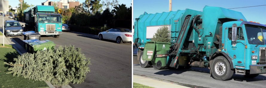 LA Sanitation has curbside collection for Christmas trees. If your Christmas tree is too big to cut and place inside the green waste bin, simply place the tree next to your green waste bin on collection day.