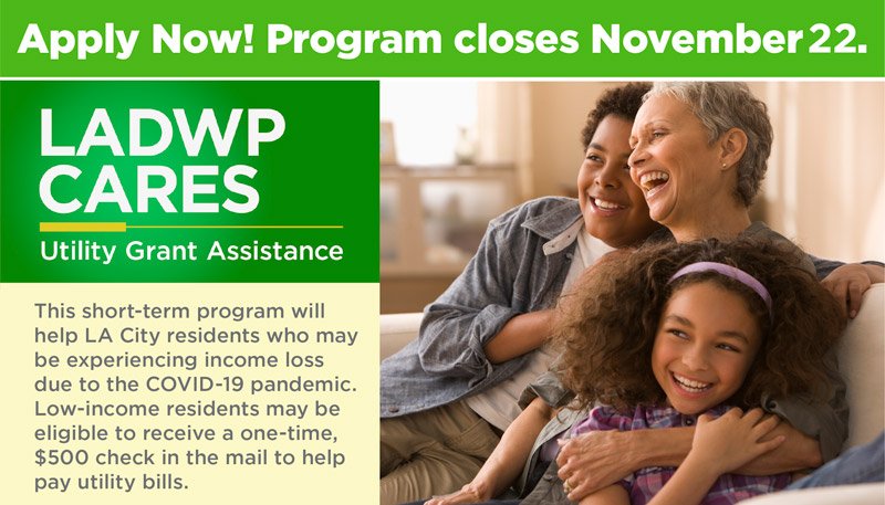Registration is now open for the $50 million COVID-19 Utility Grant Program, which is being administered by LADWP, and will provide $500 per household to help low-income families impacted by COVID-19 with utility bills. Registration is available online through November 15, 2020, and will prioritize City of LA LADWP customers who are enrolled in its low-income programs. However, City LADWP customers not enrolled in the low-income assistance programs who are impacted by COVID-19, and earn at 50% AMI or lower, can also apply.