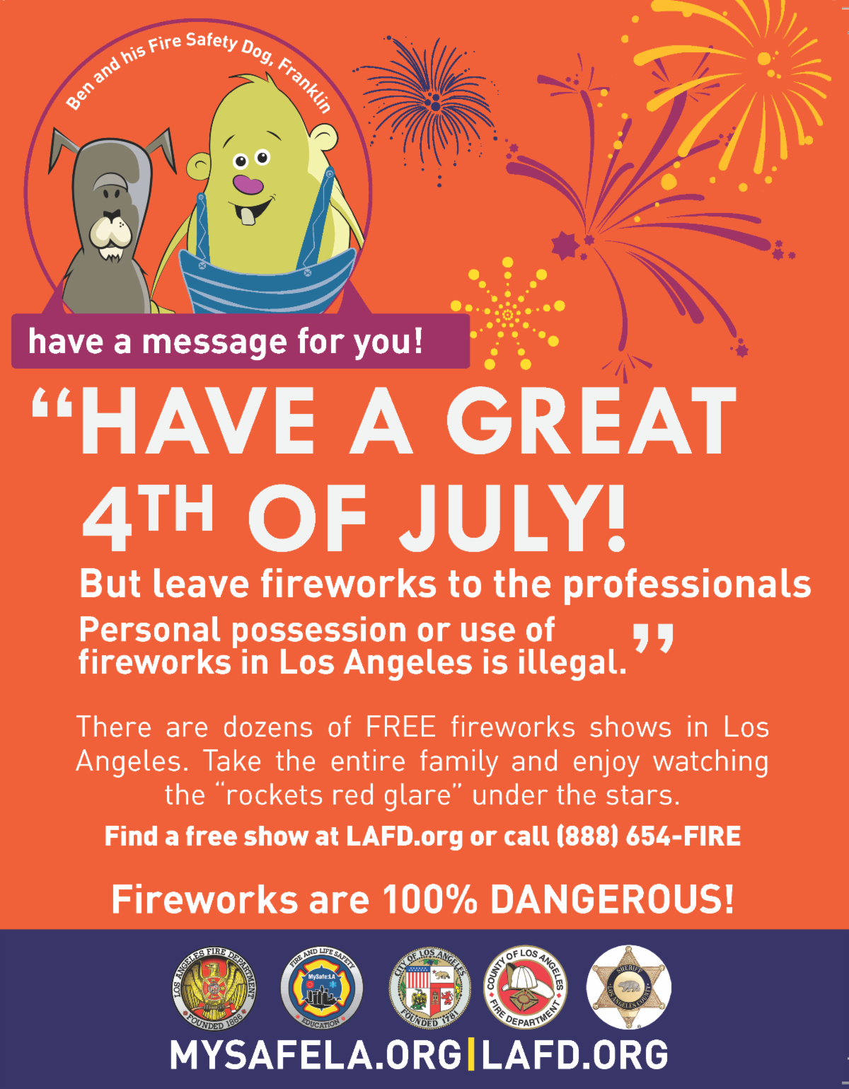 Personal possession or use of fireworks in Los Angels is illegal. There are dozens of FREE fireworks shows in Los Angeles. Take the entire family and enjoy watching the “rockets’…